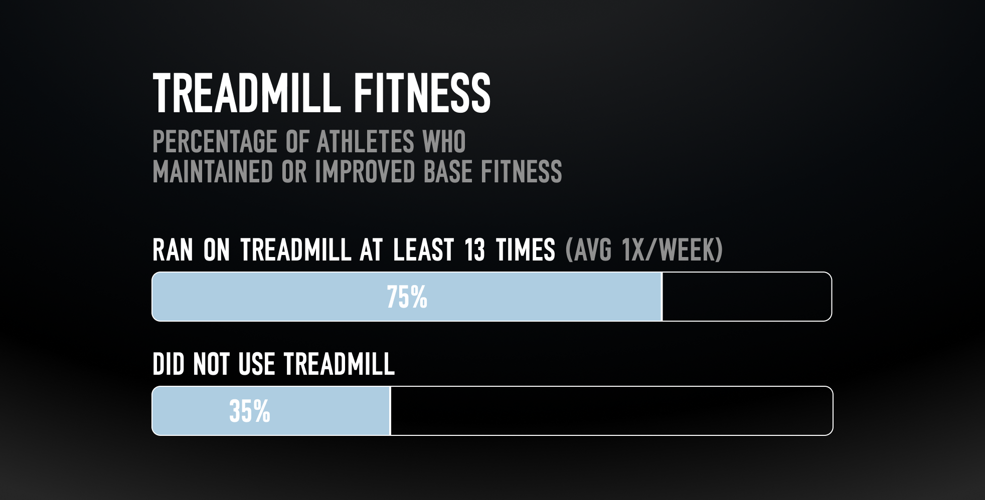 But here’s the catch: athletes who logged at least 13 treadmill runs over the winter (an average of once per week) were more than twice as likely to maintain or grow their Base Fitness than those who didn’t use a treadmill at all.