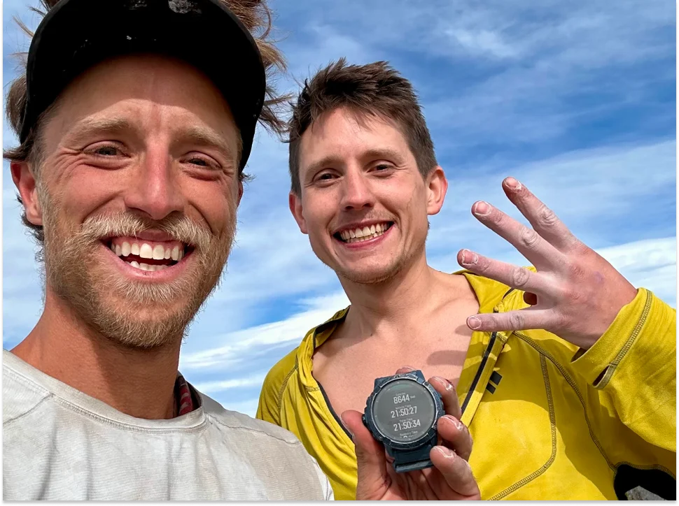 Fueling properly I think was the biggest challenge by far. We're basically doing ultramarathon endurance, technical climbing for 22 hours and it was really challenging to stay fueled properly when you're climbing that hard and long. We both had some stomach issues a few times and as a result had to skip a few planned snacks or meals which was rough, but expected. It was also the mental challenge of not knowing if it's literally possible for us to do in under 24 hours, but we were ok with the possibility of us going over that timeline as long as it was completed in a single push.