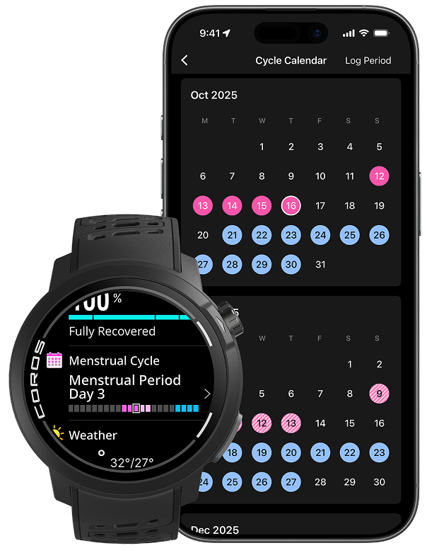Your cycle plays a key role in how you train and recover. Now, your COROS helps you plan smarter—track symptoms, understand patterns, and view predictions for your next six cycles, all from your watch and app.