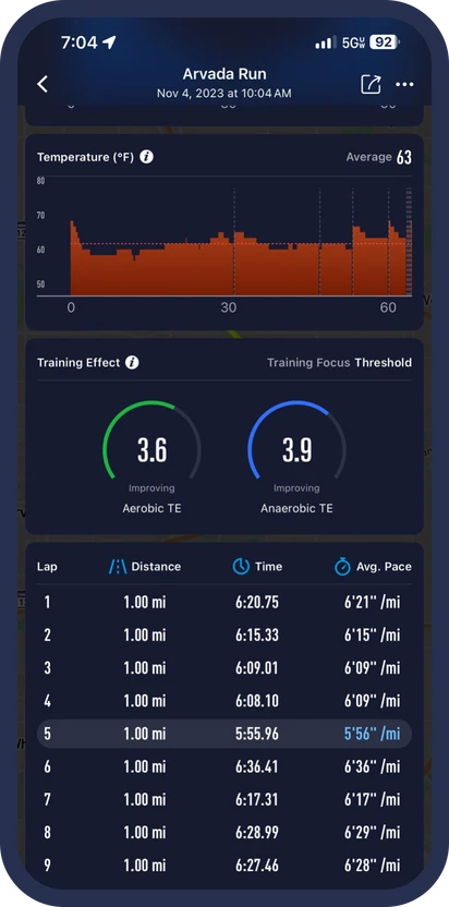 COROS POD 2 records real-time weather temperature readings, so you have a detailed understanding of the changing environment throughout your run. You can use these data points to further analyze your runs as you train in different climates or seasons.