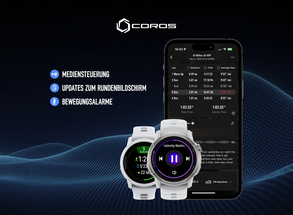 Steuere deine Audiowiedergabe, sieh deine Rundendaten noch übersichtlicher und erhalte Erinnerungen, dich zwischendurch zu bewegen und zu dehen.