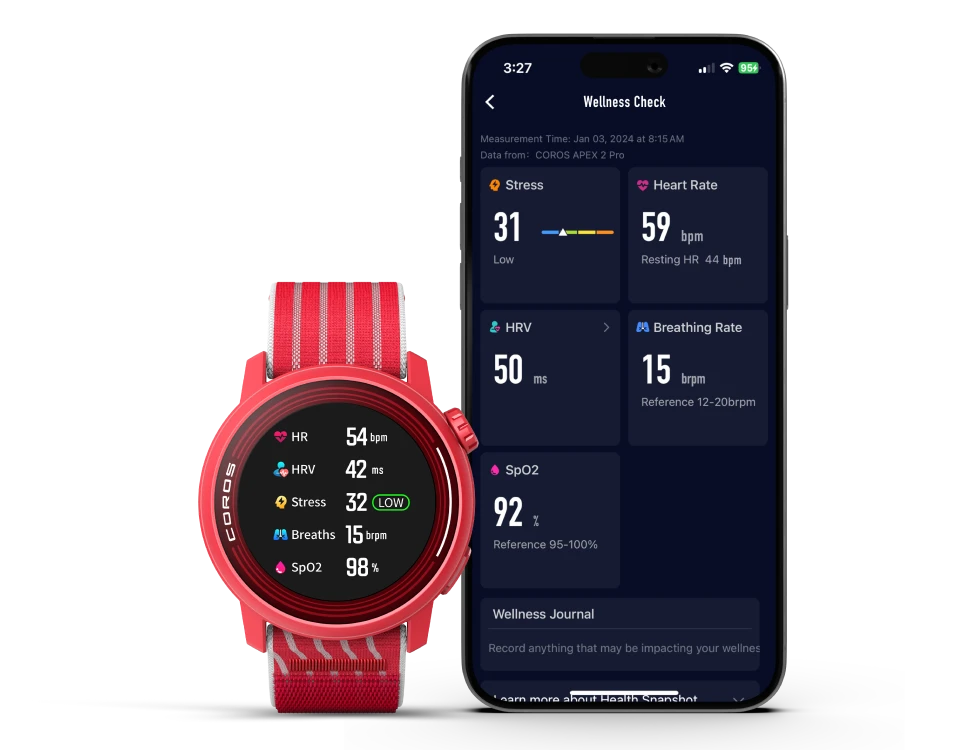 Wellness Check makes its introduction in your COROS watch toolbox. Now, you can take a manual 30-60 second assessment that will provide a variety of health values at the same time. It is a new feature designed to provide users with a comprehensive overview of your wellness status, essential for those on the go, athletes in training, or anyone curious about monitoring their health.